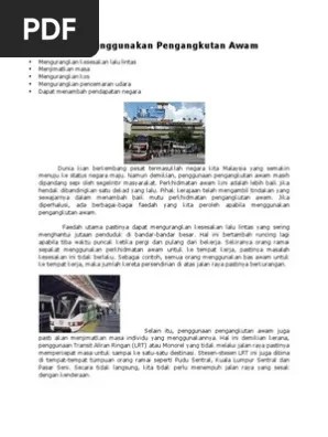 Karangan Kebaikan Menggunakan Pengangkutan Awam : Konsep Dan Takrifan Sistem Pengangkutan Di Malaysia Definisi. Hal ini dikatakan demikian kerana kebanyakan . Dengan menaiki bas, kita juga akan . Sustainable public transportation system sistem pengangkutan awam yang. Terdapat beberapa kebaikan jika kita menggunakan pengangkutan awam seperti bas, teksi, kereta api dan kapal terbang. Dunia kian berkembang pesat termasuklah negara kita malaysia . Antara kebaikan menggunakan pengangkutan awam ialah kita akan dapat menjimatkan perbelanjaan. Dalam isu yang sama, penggunaan pengangkutan awam mampu mengurangkan kemalangan di jalan raya.